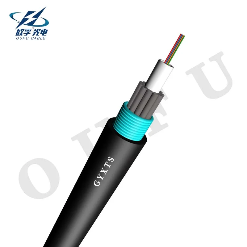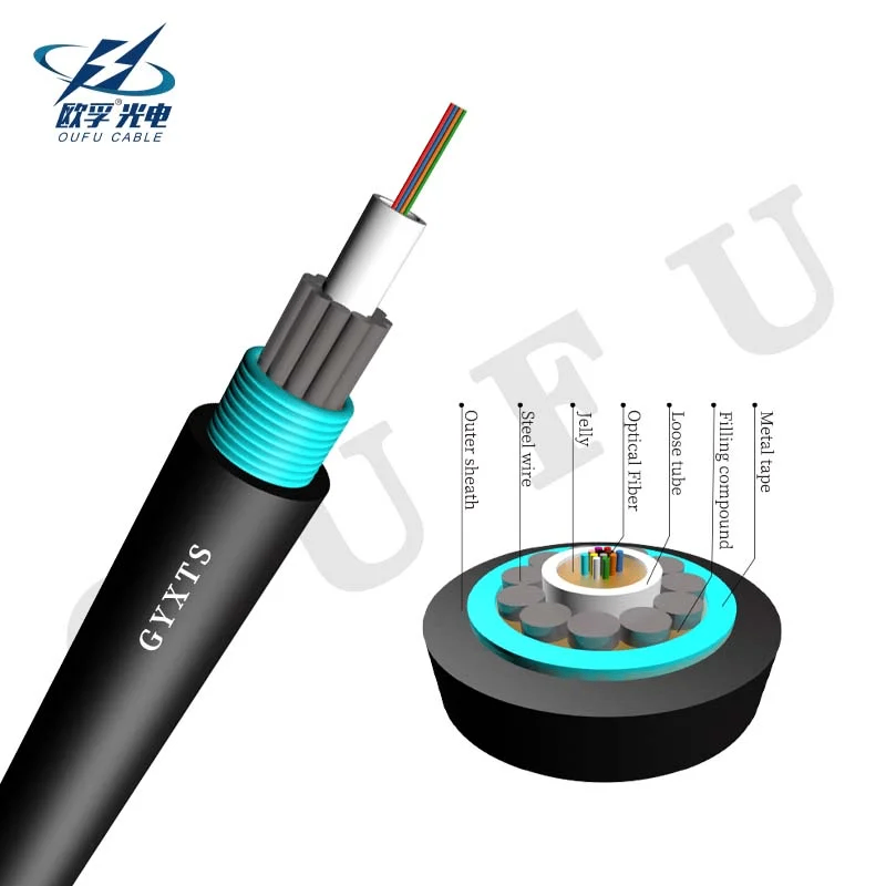 The fibers are positioned in a loose tube made of high-modulus plastic. The tubes are filled with a water-resistant filling compound. The tube is wrapped with a layer of water-blocking glass yarn. A corrugated steel tape is applied over the yarn. Two rip cords are located between the glass yan and the steel tape. Then the cable is completed with a high-density polyethylene (PE) sheath.